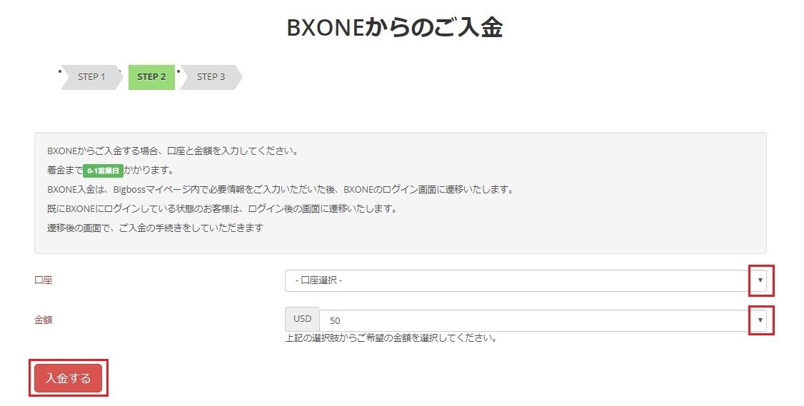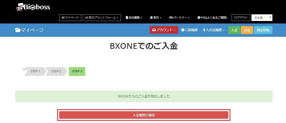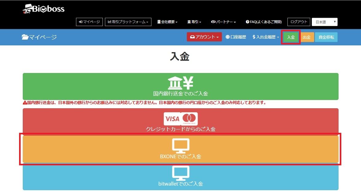 こちらのページでは、BXONE→BigBossの入金方法を詳しくご案内したいと思います。
