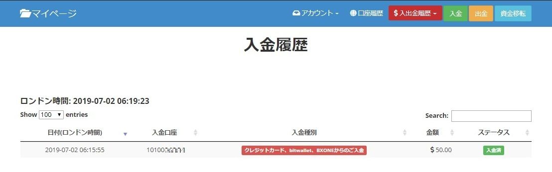 既に「入金済」であることが確認できました。直ぐにトレードできますね。