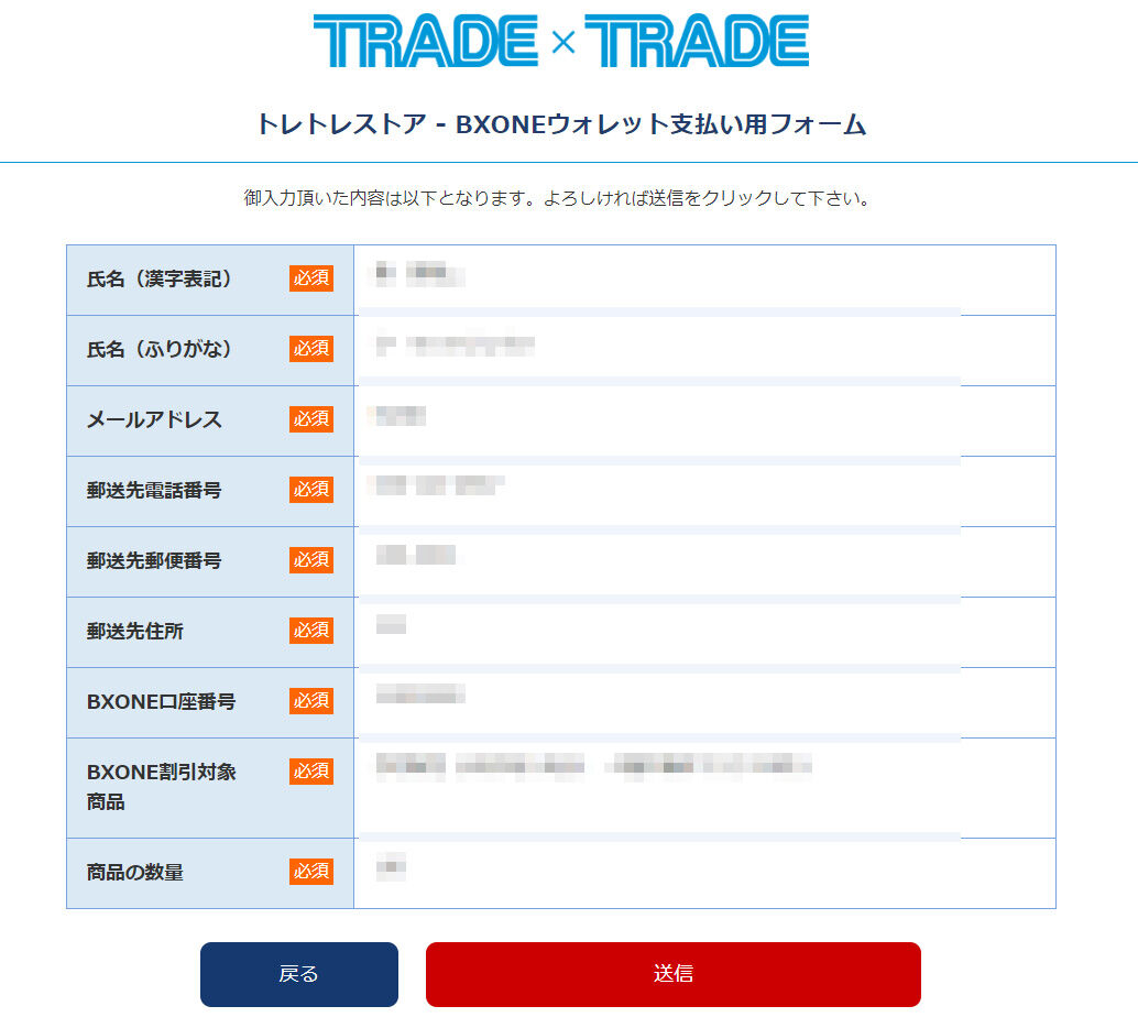 登録内容に間違いがなければ「送信」ボタンを押して注文リクエストは完了となります。