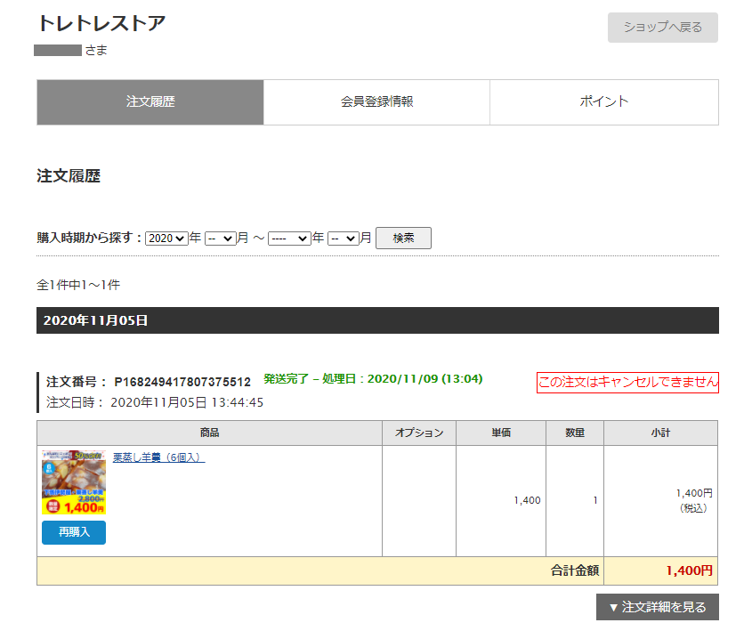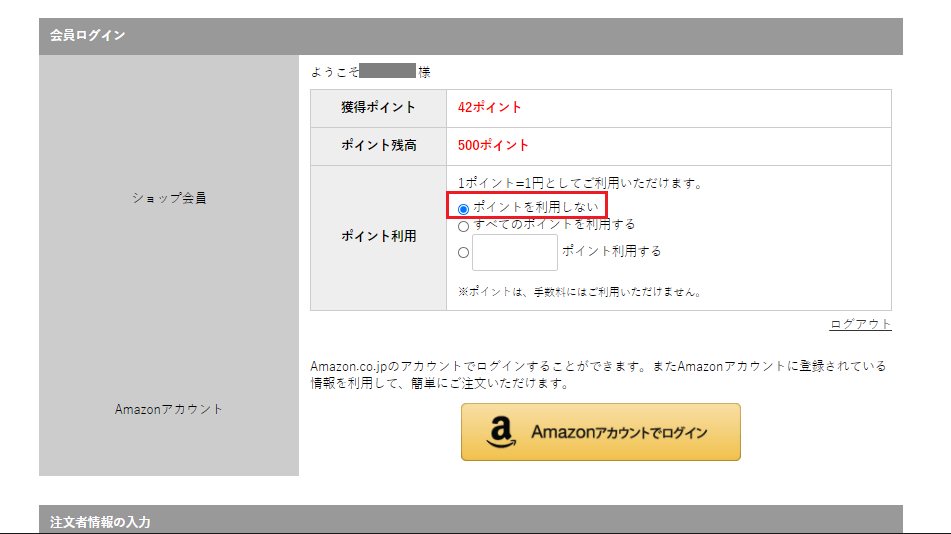 獲得ポイント:こちらは商品が発送された後に正式に付与されるためここではまだ使用できません。