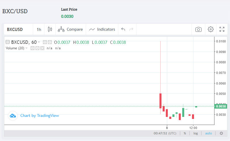 プレセールでは0.0025ドルだったBXC、どれだけ価格が上がるか注目されていましたが、上場直後には予定位通り0.005ドルを付け、その後、4倍となる、0.01ドルを付けました!