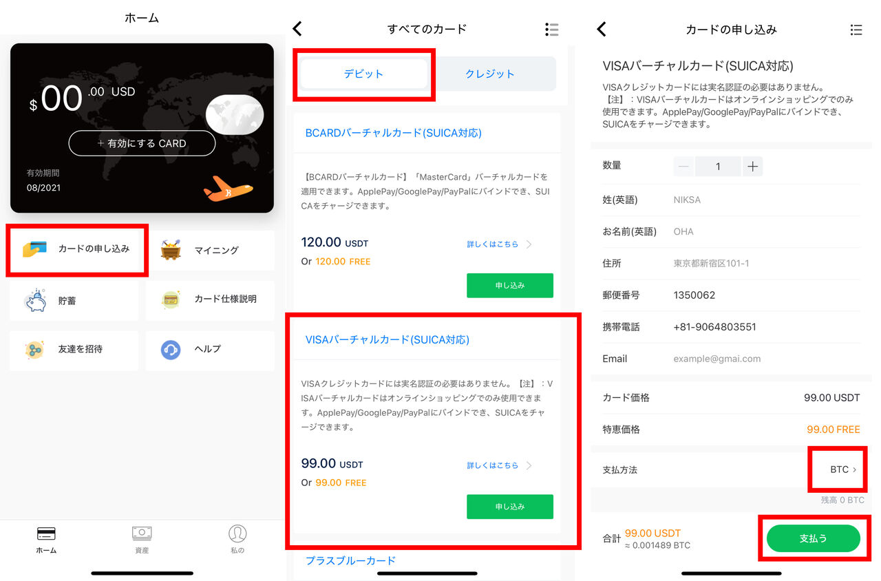 こちらでは BitFree への入金からカードの申請方法までを詳しく解説したいと思います。