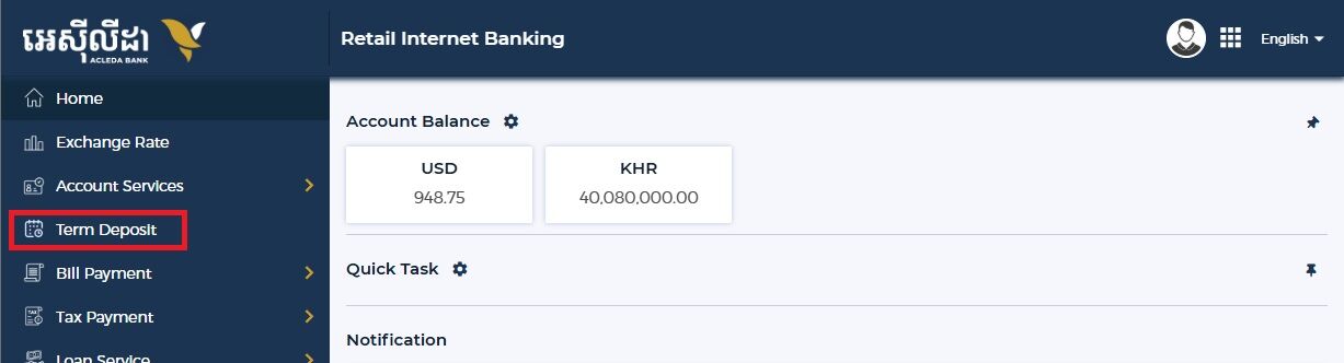 左メニューの「Term Deposit」を開きます。