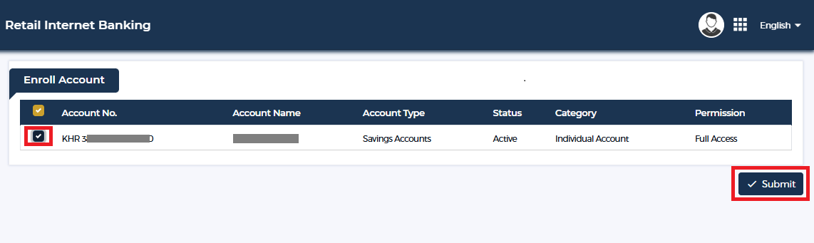 Select your account で KHR口座を選択します。