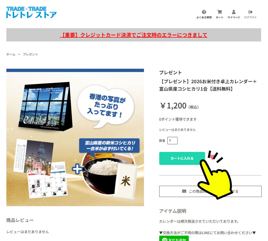 (2)ログインしたらメールに記載されていますカレンダーのLINKに移動し「カートに入れる」を選択