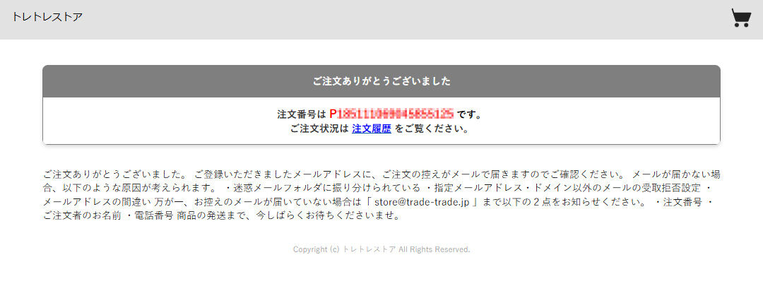 注文番号が表示され、後はお米付きカレンダーが届くのを待つだけ。